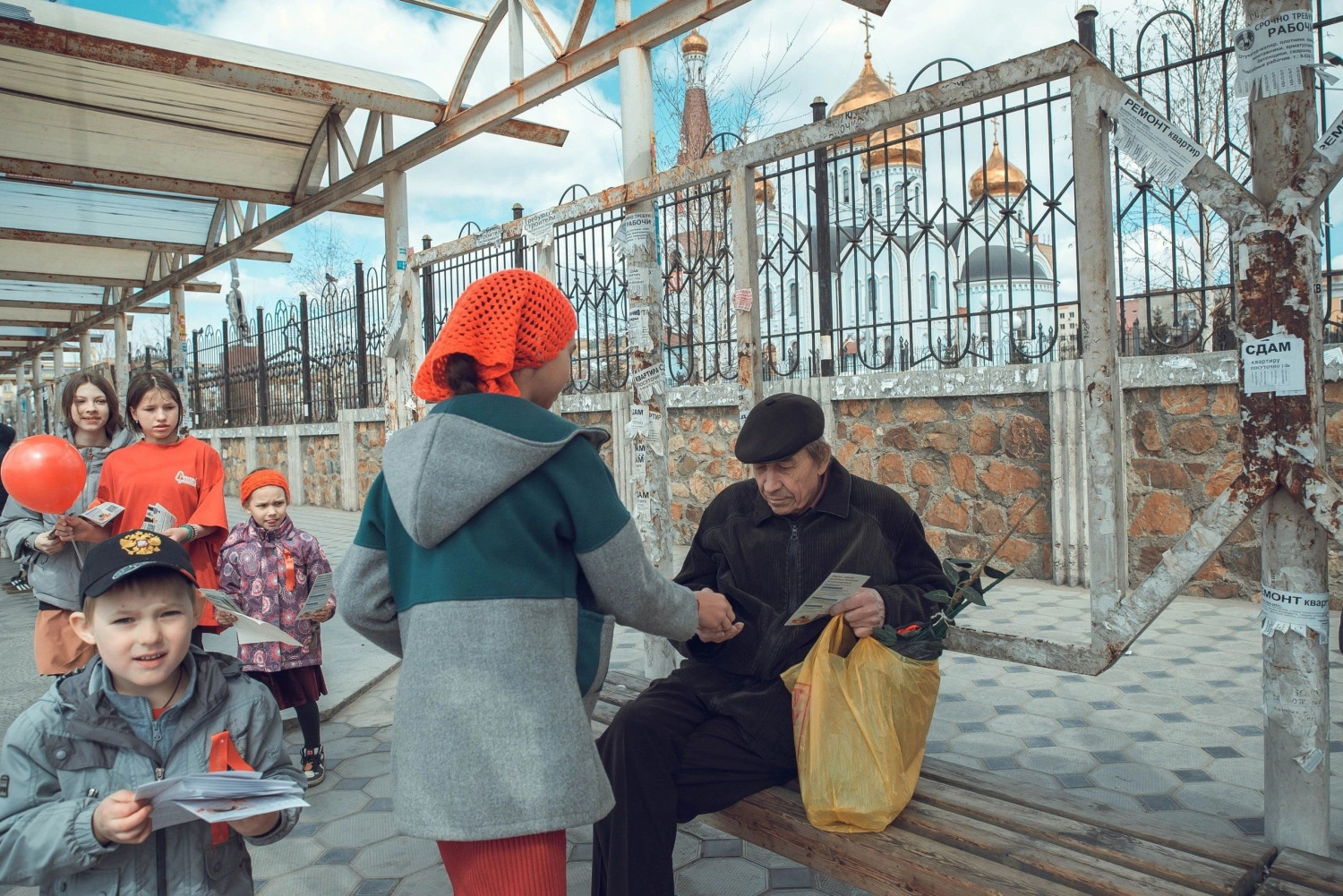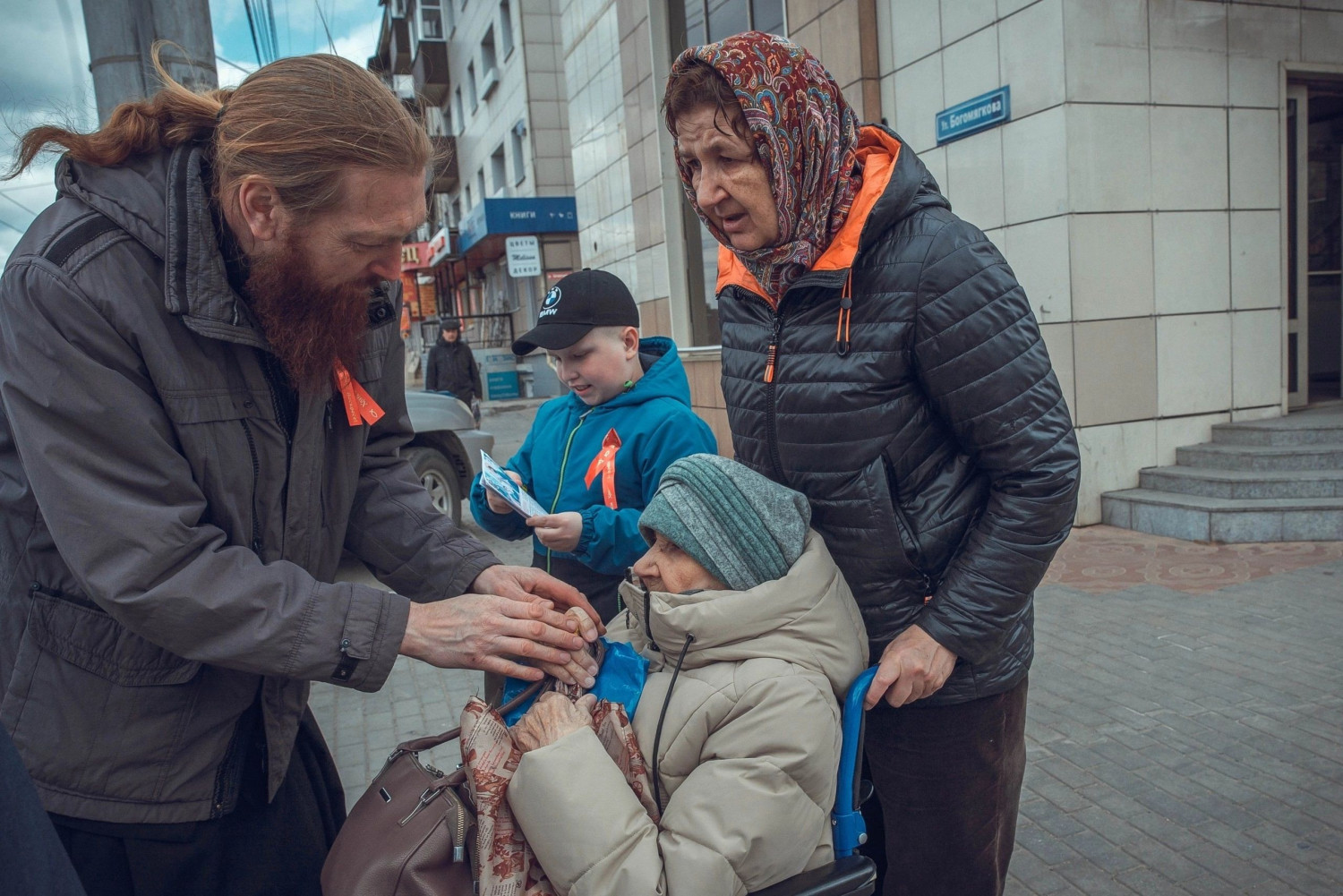 На остановках из автобуса выходили взрослые и дети, вручали горожанам подарки, шарики, буклеты, сладости, крашенки и пели пасхальные песнопения.