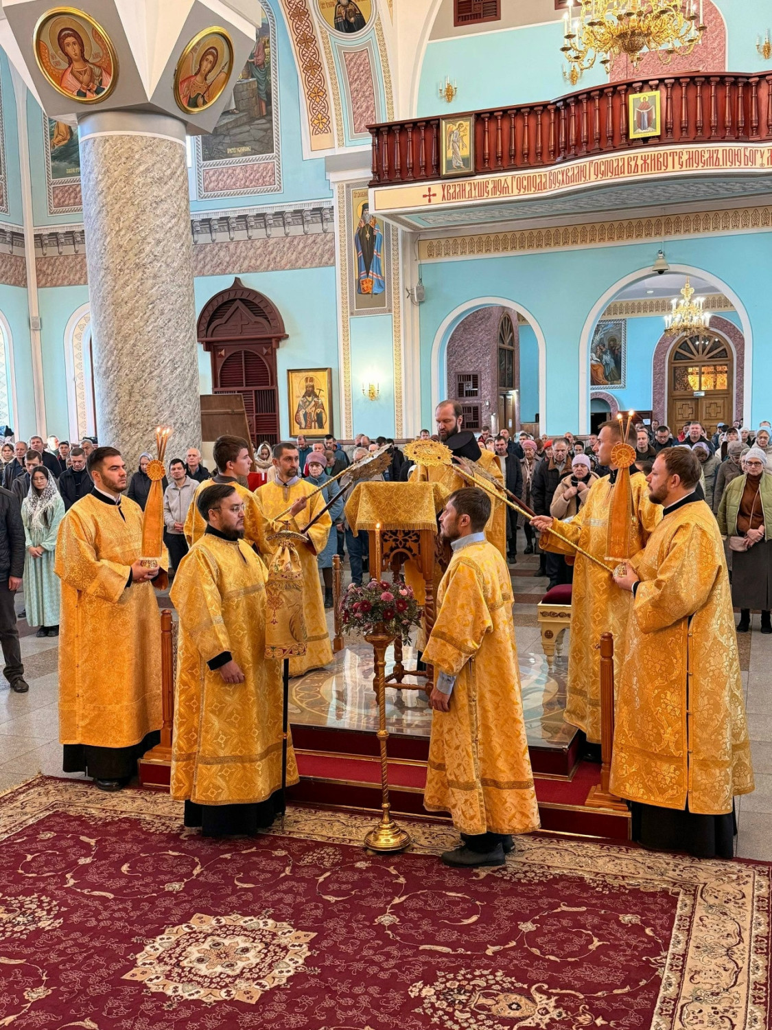 Его Высокопреосвященству сослужили клирики Казанского кафедрального собора г. Читы: