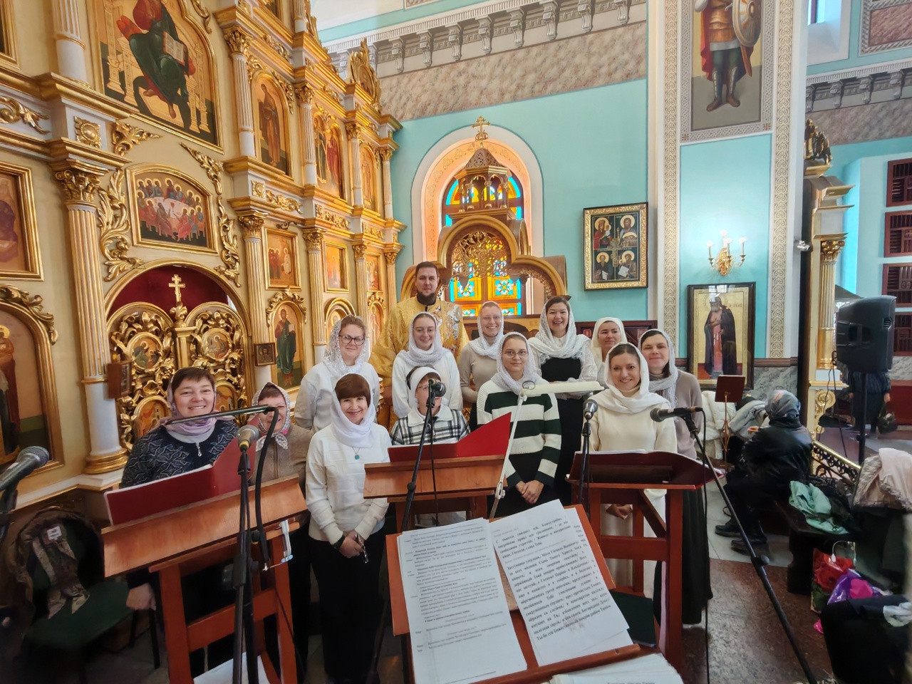 Богослужебные песнопения исполнил архиерейский молодёжный хор Казанского кафедрального собора г. Читы, под руководством Татьяны Александровны Медведевой.