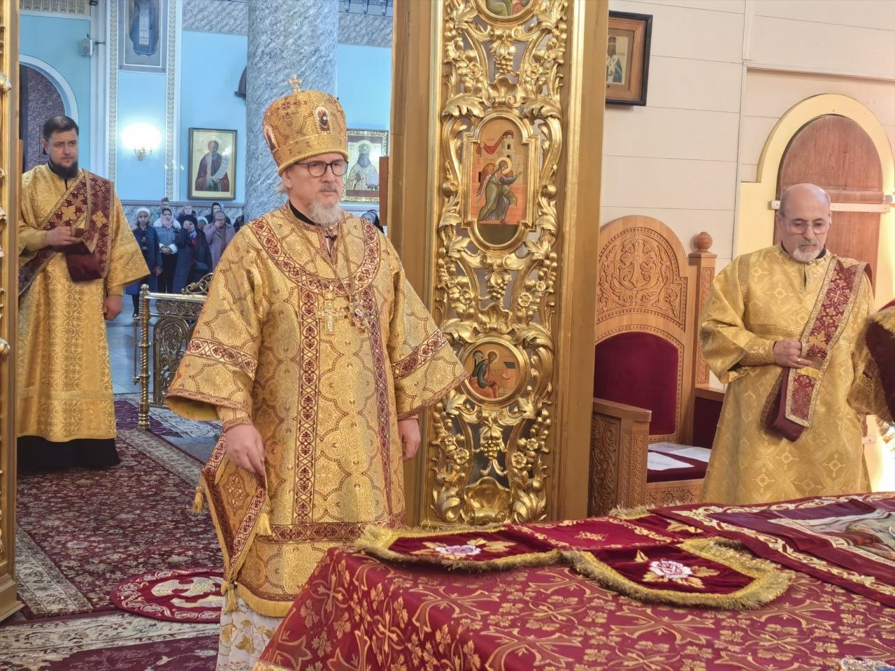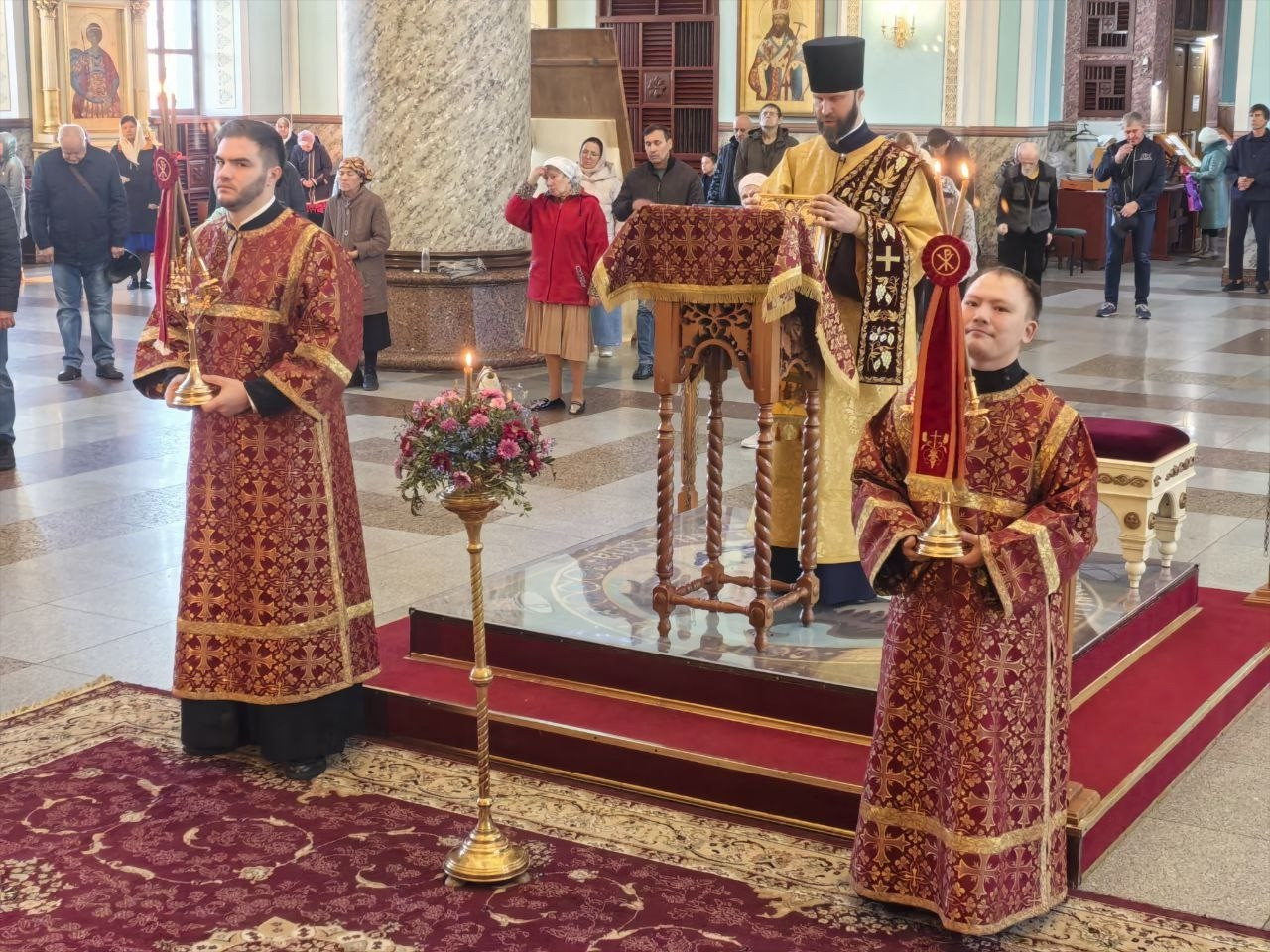 Диаконский чин: иеродиакон Иннокентий (Фёдоров); диакон Вячеслав Мельников; диакон Илия Хасанов.