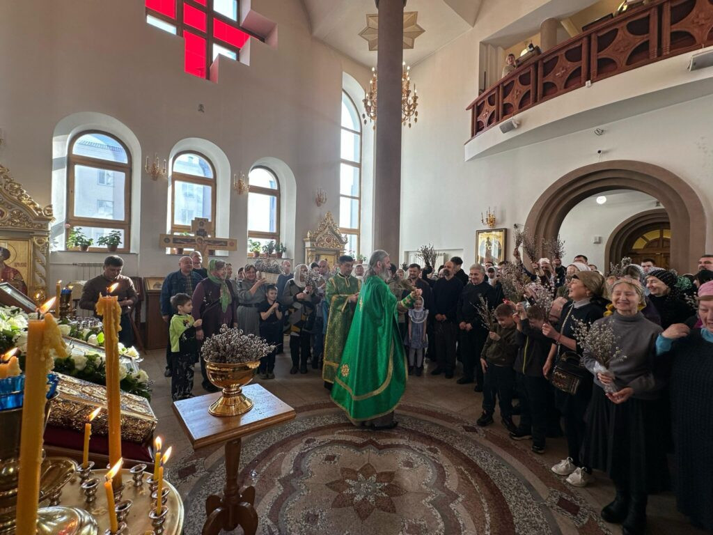 Во время утрени, по прочтении Святого Евангелия, было совершено помазание освященным елеем верующих, собравшихся в храме накануне праздника — Входа Господня в Иерусалим.