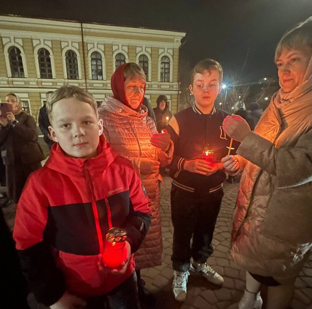 В 23:45 был совершен крестный ход, а ровно в полночь при многократном пении тропаря Пасхи началась Светлая Заутреня и литургия.