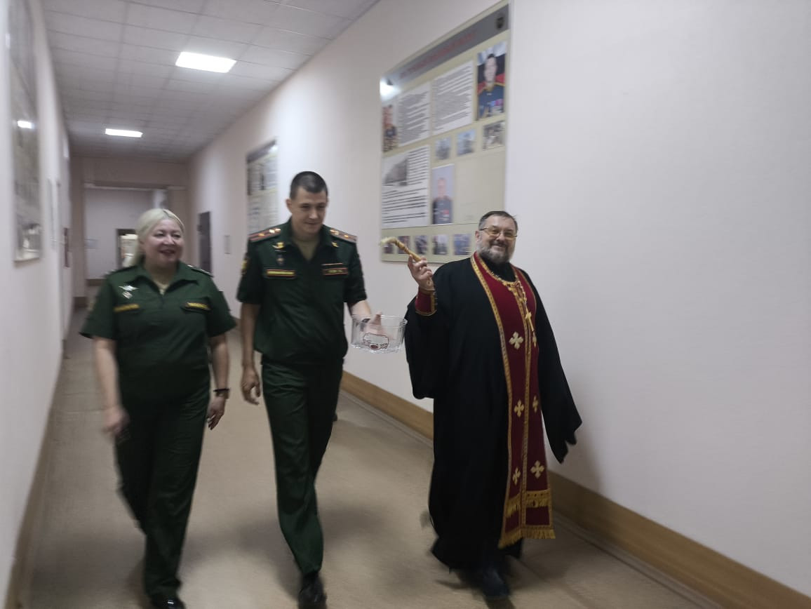 После освящения священник передал благословение митрополита Димитрия, напомнил о важности веры и нравственных принципах в их нелегкой службе.