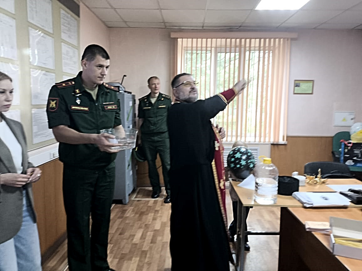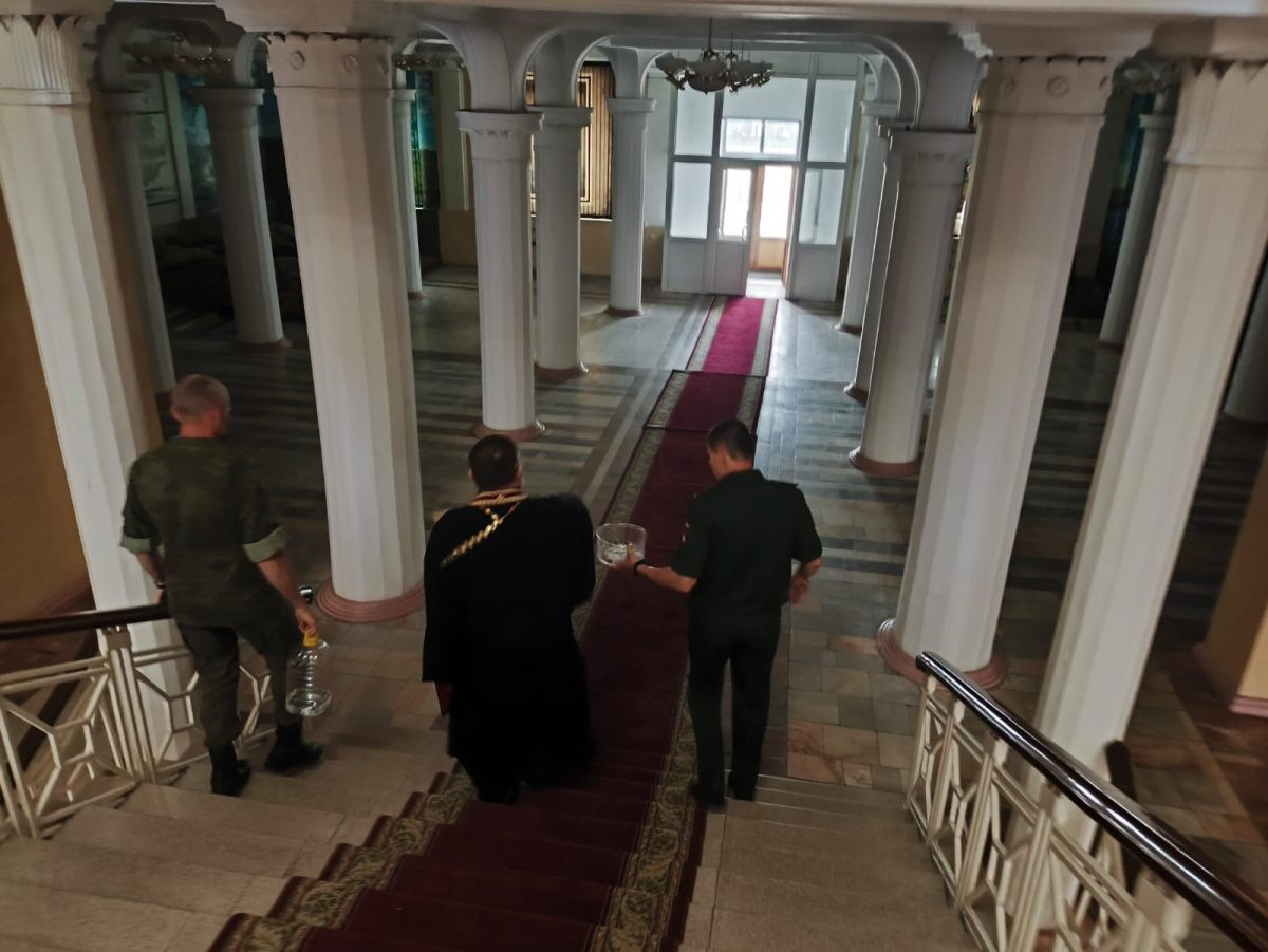 Священнослужитель совершил благодарственный молебен и освятил служебные помещения. За богослужением молился личный состав штаба армии.