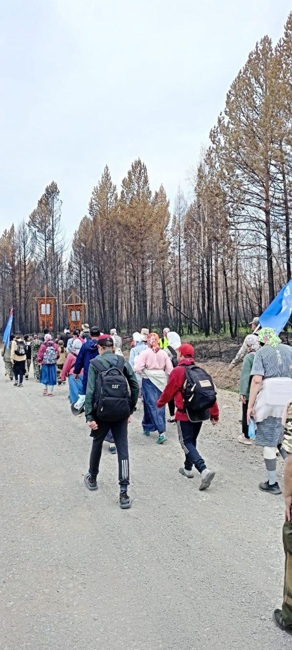 Люди объединенные верой в Иисуса Христа идут со знамёнами Церкви — хоругвиями и иконами. Общая продолжительность крестного хода три дня.