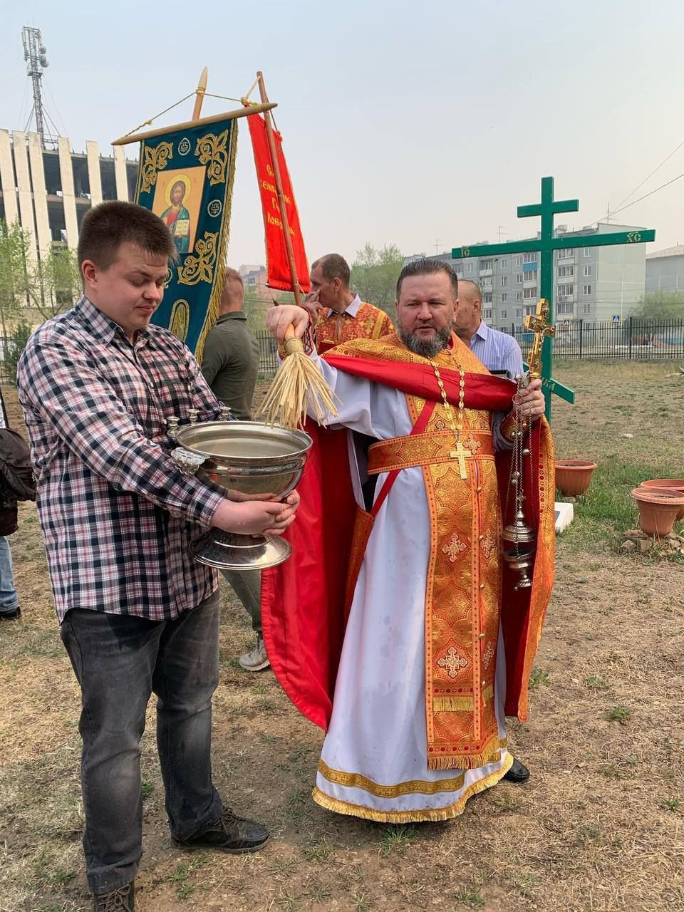 25 мая, по благословению митрополита Читинского и Петровск-Забайкальского Димитрия, иерей Алексей Янковский, настоятель храма Воздвижения Креста Господня на КСК, по окончании Божественной литургии совместно с прихожанами храма совершил крестный ход с молебным пением о ниспослании дождя.