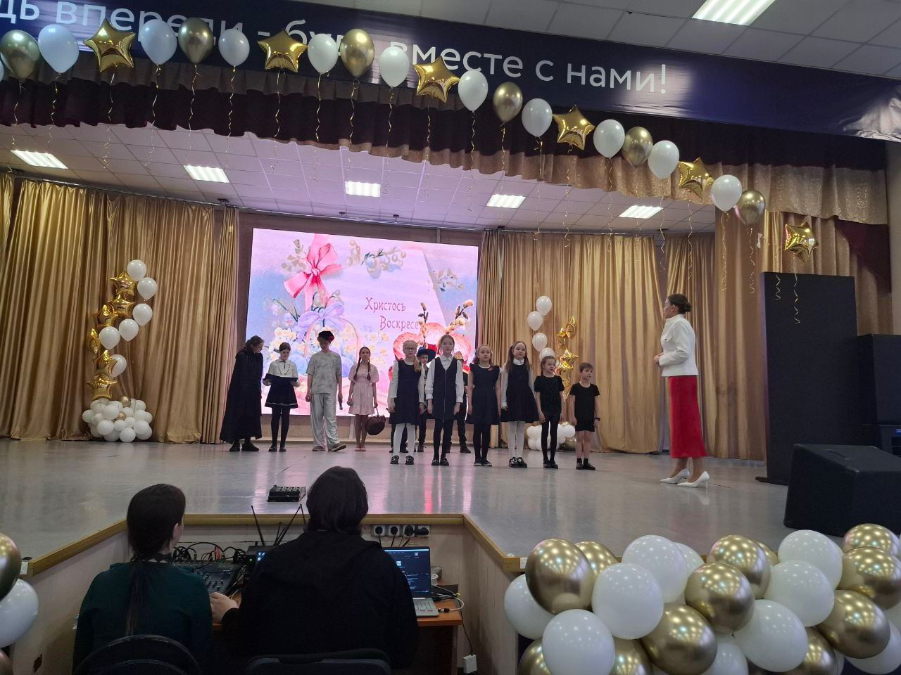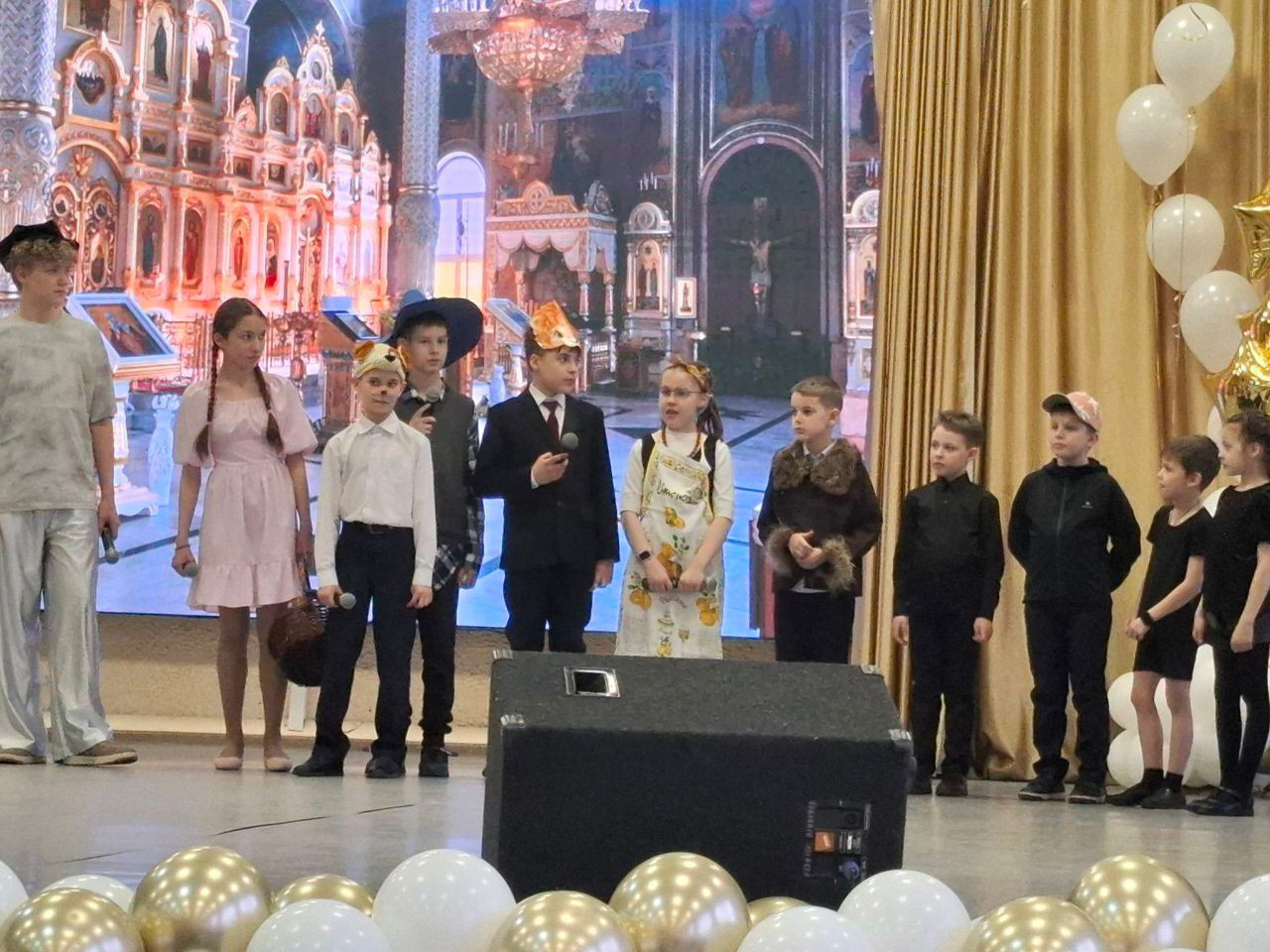 Затем с театральной открыткой выступили учащиеся Православной гимназии. Ребята показали зрителям Пасхальный вариант сказки «Волшебник Изумрудного города», а также спели песню.