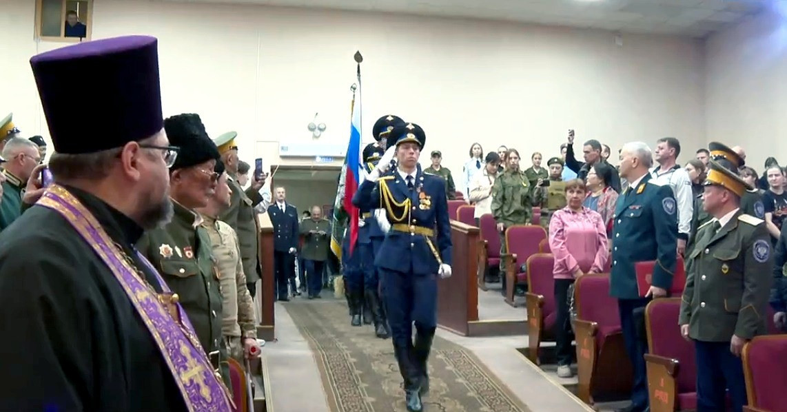 Ответственный секретарь Совета при Президенте РФ по делам казачества Алексей Кириченко зачитал приветственную телеграмму от председателя Совета при Президенте по делам казачества, помощника Президента РФ Дмитрия Миронова.