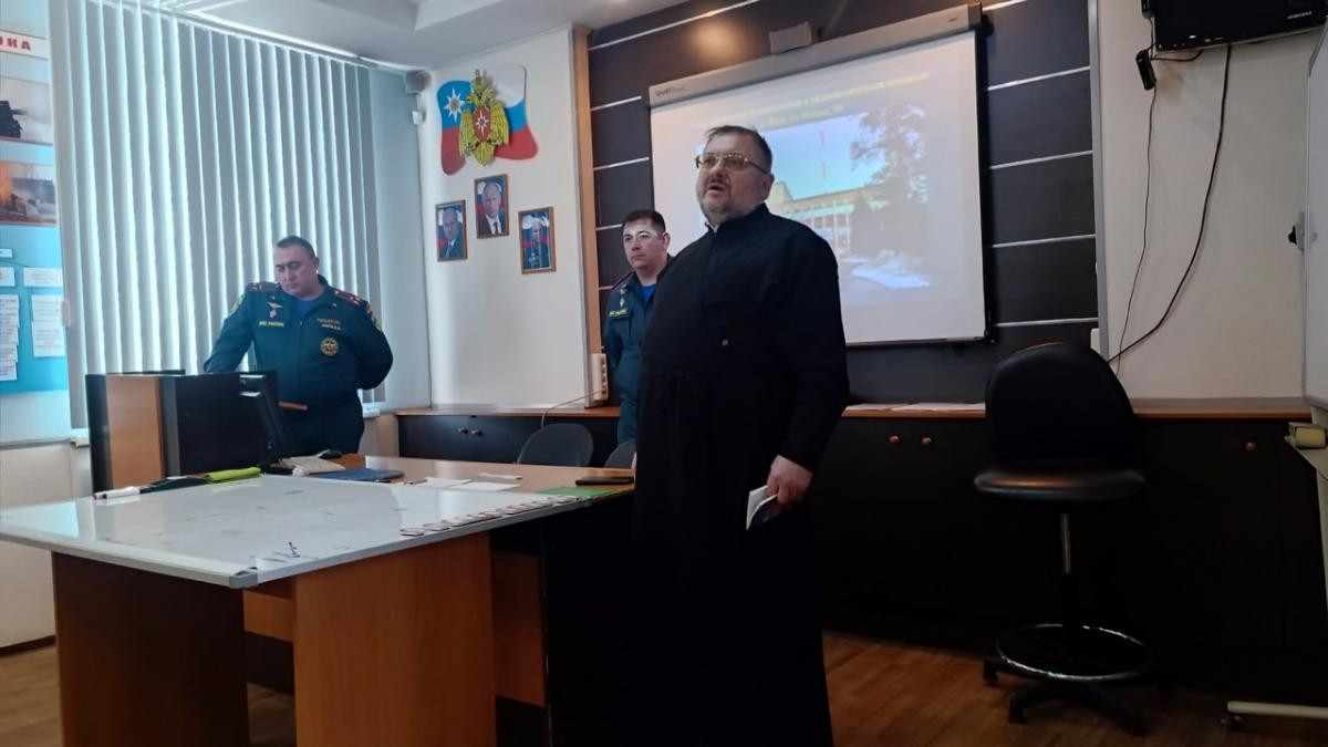 Священнослужитель, в рамках Дня православной книги, рассказал спасателям о празднике и провёл лекцию «Книга, как основа воспитания любви к Родине».