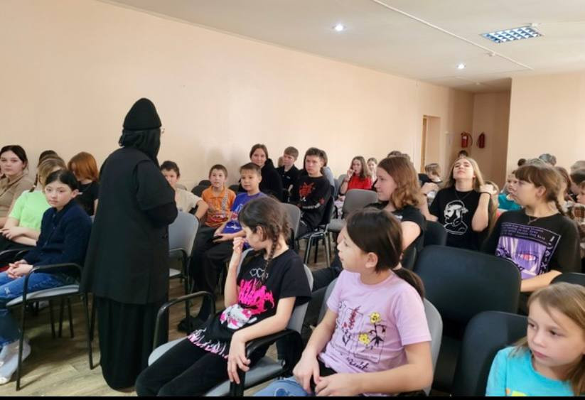 Кроме того, матушка объяснила детям устройство православного храма, его символику и значение различных элементов. Она рассказала о том, как важна община и духовная жизнь, как молитва и участие в церковных таинствах помогают укреплять веру и находить внутренний покой. Монахиня также подчеркнула, что храм — это не просто здание, а место, где люди могут встретиться с Богом и друг с другом, поддерживая друг друга в трудные времена.