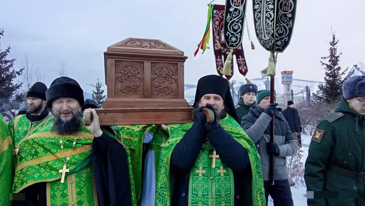 По завершении Литургии был совершен традиционный крестный ход посвященный преподобному Варлааму Чикойскому. Рака с мощами преподобного была обнесена вокруг главного храма Забайкалья.
